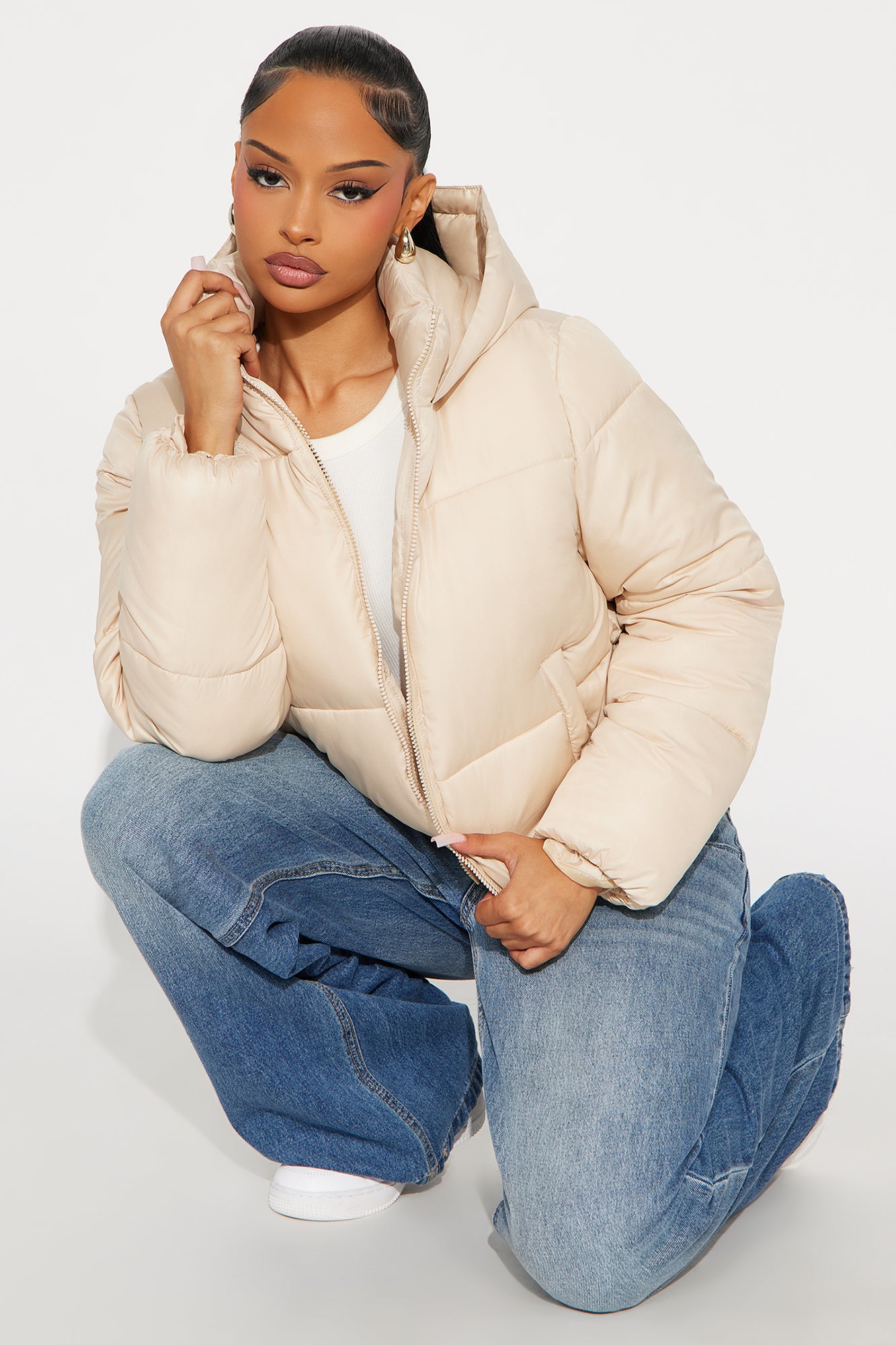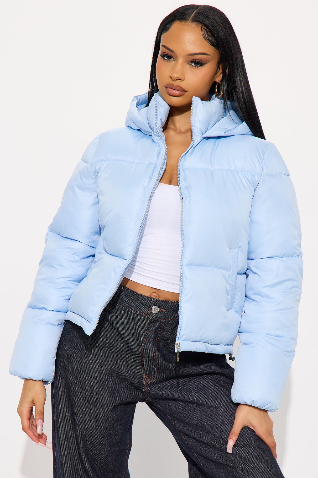 Available In Black, Chocolate, Hunter, Light Blue, Sand And White.Puffer JacketZipper FrontHoodedHigh NeckFront PocketsShell: 100% PolyesterLining: 100% PolyesterPadding: 100% PolyesterImported