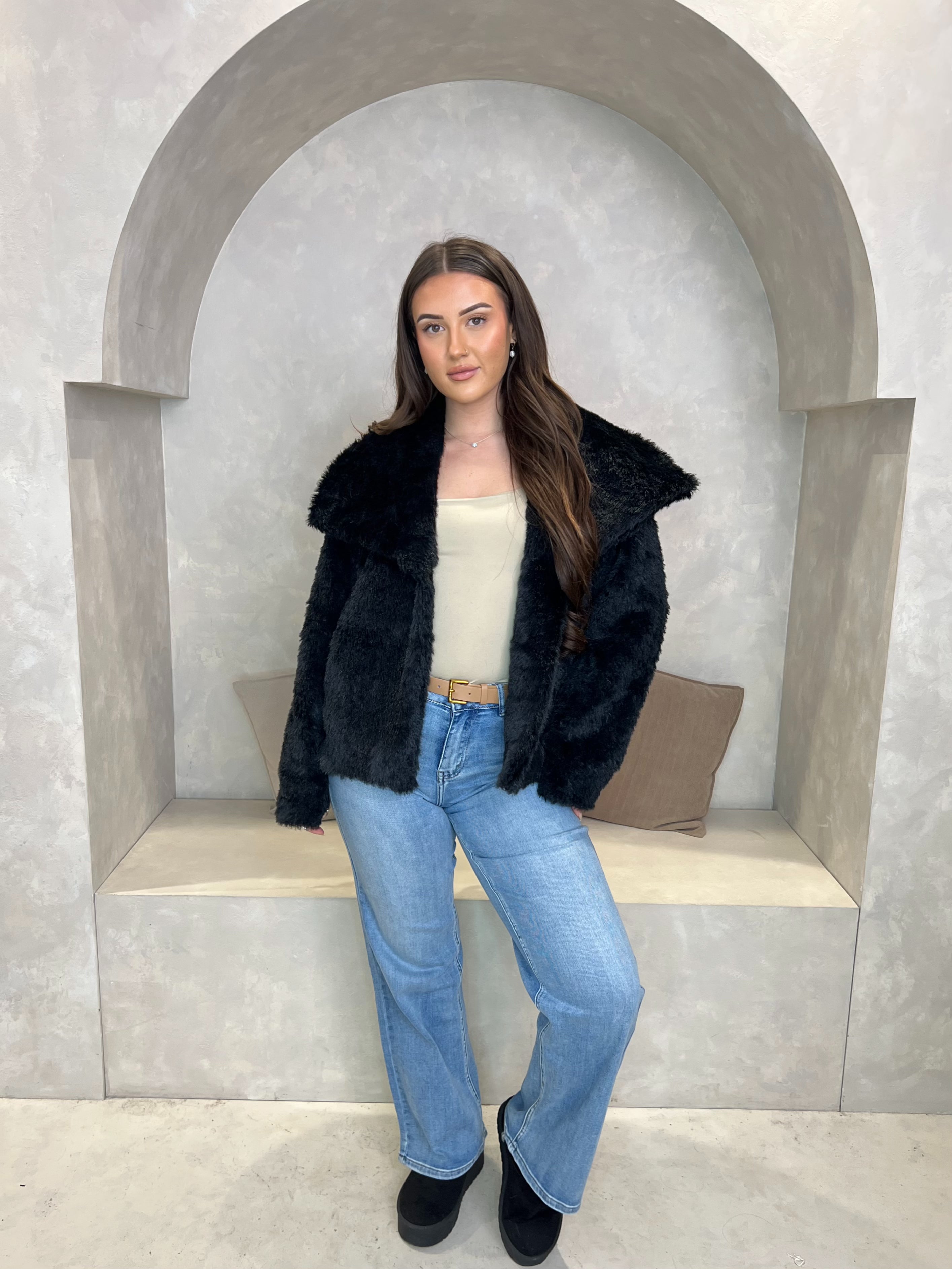 This Faux Fur Collared Jacket features a stylish collar and long sleeves for added warmth and comfort. The faux fur adds a touch of elegance and the button fastening ensures a secure fit. Stay chic and cozy with this must-have jacket.