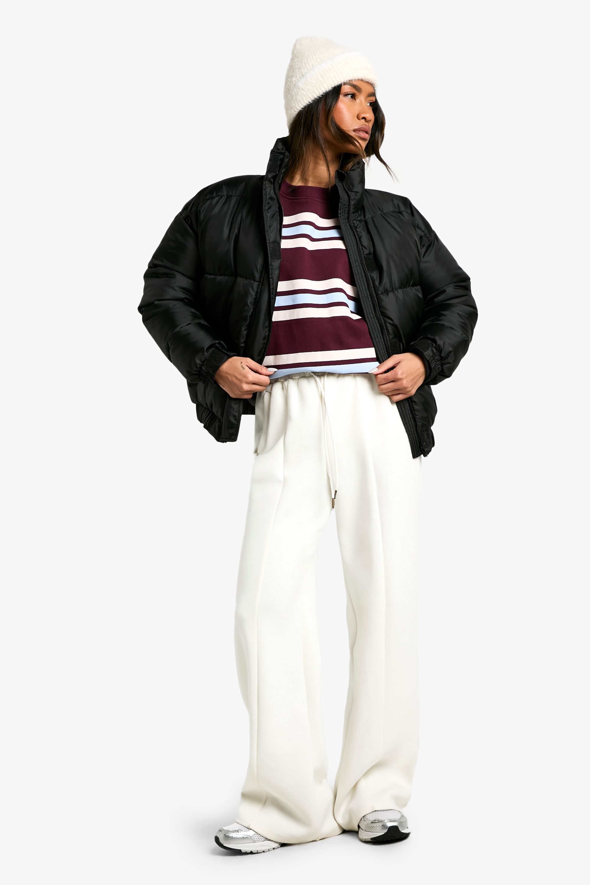 • Embrace the chilly weather in style with this trendy quilted puffer jacket from Boohoo. The funnel collar offers additional protection against the elements, while the oversized silhouette allows for easy layering over your favourite jumpers. Perfect for casual outings, this jacket pairs brilliantly with wide-leg trousers and trainers for a relaxed weekend look. For a touch of contrast, try styling it with a striped jumper and a cosy beanie. Whether you're heading to a family gathering or meeting friends for coffee, this puffer jacket will keep you warm and fashionable. Its versatility makes it an essential addition to your autumn and winter wardrobe, easily transitioning from day to night with a simple change of accessories.