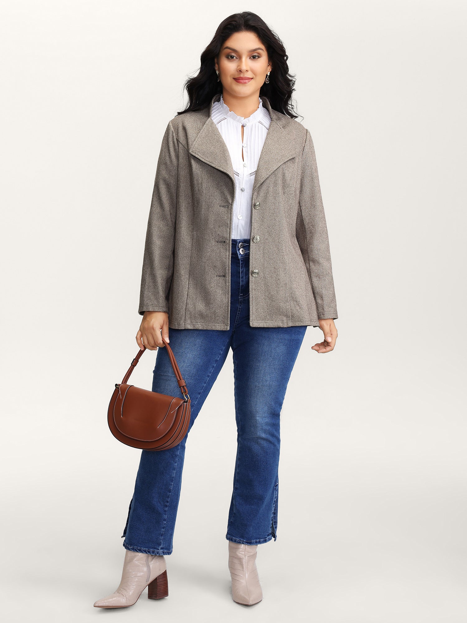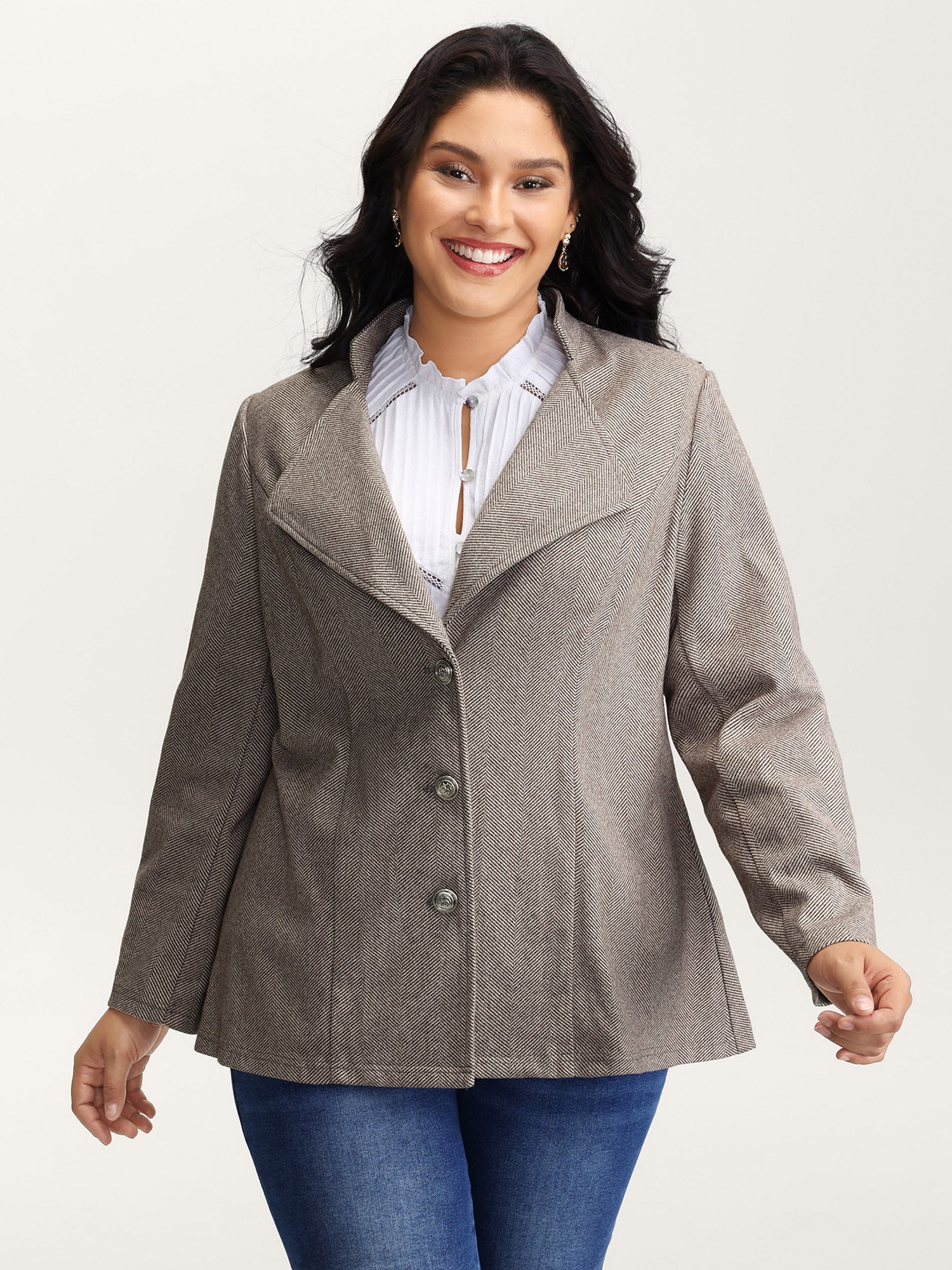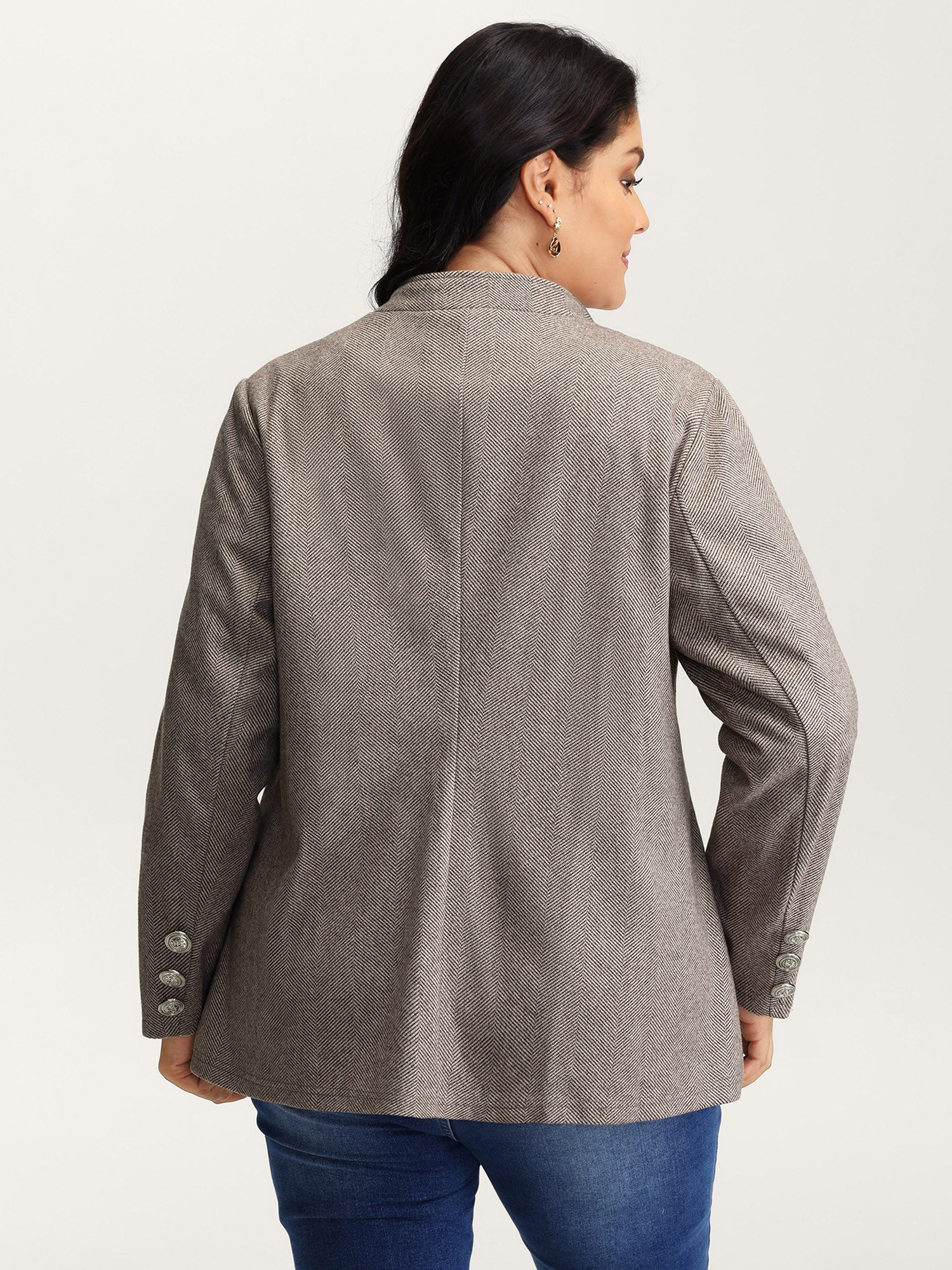 Herringbone Pattern Cinched-Waist Jacket
