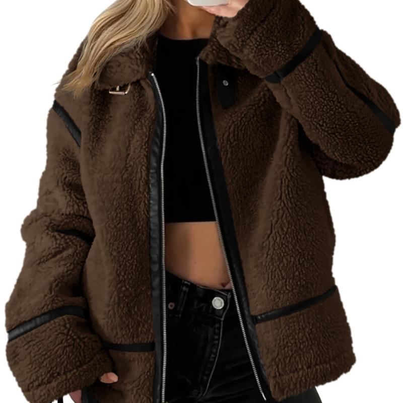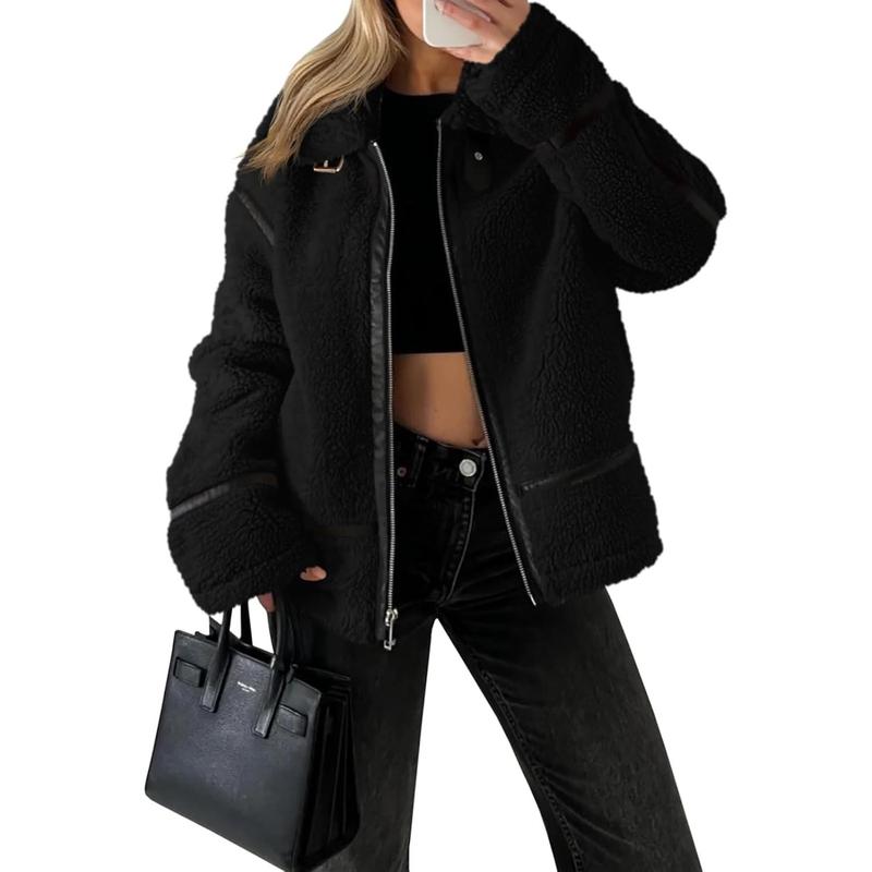 Material: Made with 100% premium quality faux lamb fur and outside material with soft leather fabric, comfortable and breathable, skin-friendly and warm, suitable for spring, autumn and winter. Fashion design: Vintage cow faux leather, cropped and oversized design, contrast binding leather patchwork with nickel studs, long sleeve, lapel, zipper front, two pockets in both side. Match: Perfect to pair with basic T-shirt, crop top, leggings, black slacks, shorts, leggings, jeans, tight dress, knee-length boots or high heels. Occasion: Suitable for various occasions, daily wear, dating, school, vacation, work, party, shopping etc. Services and Wash: Please check our size chart before you buy and choose your right size. Of course, if you encounter other things in your purchase, please contact us by email and we will do our best to help you solve your problems. It is recommended to soak in warm water first and then machine wash.   Product Description Womens Fashion Winter Coat Long Sleeve Lapel Faux Shearling Shaggy Jackets         The video showcases the product in use.The video guides you through product setup.The video compares multiple products.The video shows the product being unpacked.       Womens Winter Clothes 2024 Fuzzy Fleece Coat Faux Warm Outwear Jackets   Imily Bela Womens Winter Faux Fur Coats Fleece Zip up Sherpa Moto Jackets Trendy Warm Leather Patchwork Outerwear Imily Bela Womens Winter Faux Fur Coats Fleece Zip up Sherpa Moto Jackets Trendy Warm Leather Patchwork Outerwear Imily Bela Womens Winter Faux Fur Coats Fleece Zip up Sherpa Moto Jackets Trendy Warm Leather Patchwork Outerwear     Detail Shows: Lapel or stand collar; Zip up front; Long sleeve; Side hem design; Leather Patchwork; Faux Fleece fabric.   Imily Bela Womens Winter Faux Fur Coats Fleece Zip up Sherpa Moto Jackets Trendy Warm Leather Patchwork Outerwear Imily Bela Womens Winter Faux Fur Coats Fleece Zip up Sherpa Moto Jackets Trendy Warm Leather Patchwork Outerwear       Women Oversized Coats Fleece Sherpa Jacket Casual Trendy Outerwear With Pockets Imily Bela Womens Winter Faux Fur Coats Fleece Zip up Sherpa Moto Jackets Trendy Warm Leather Patchwork Outerwear The womens warm coat is available in army green, khaki, black, pink, white, red brown and brown.   Imily Bela Womens Winter Faux Fur Coats Fleece Zip up Sherpa Moto Jackets Trendy Warm Leather Patchwork Outerwear Imily Bela Womens Winter Faux Fur Coats Fleece Zip up Sherpa Moto Jackets Trendy Warm Leather Patchwork Outerwear       Buyer Shows   Imily Bela Womens Winter Faux Fur Coats Fleece Zip up Sherpa Moto Jackets Trendy Warm Leather Patchwork Outerwear Imily Bela Womens Winter Faux Fur Coats Fleece Zip up Sherpa Moto Jackets Trendy Warm Leather Patchwork Outerwear       Tankaneo Size Chart Imily Bela Womens Winter Faux Fur Coats Fleece Zip up Sherpa Moto Jackets Trendy Warm Leather Patchwork Outerwear     Imily Bela Womens Winter Faux Fur Coats Fleece Zip up Sherpa Moto Jackets Trendy Warm Leather Patchwork Outerwear