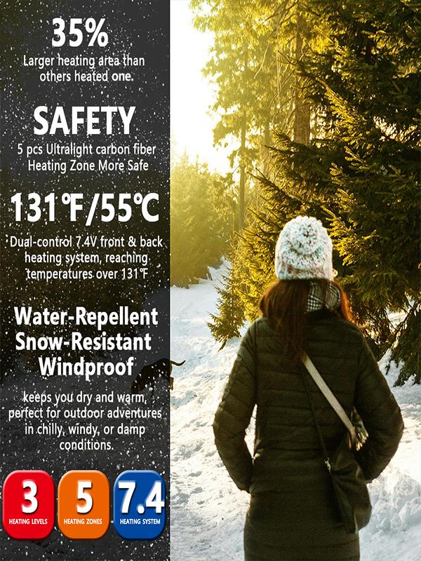 Size Guide:Women M = Men SWomen L = Men MWomen XL = Men L Women XXL = Men XL Women XXXL = Men XXL Women XXXXL = Men XXXL …… Note: Women's sizes are equivalent to one size smaller in men's sizing. Additionally, the women’s version features a fitted waist design, while the men’s version does not. Norwell Heated Hoodie Jacket with 7.4V/3A 5000mAh Battery Pack, Dual Control 5Heat Zones LED Waterproof Comfort Basic Winter Clothes Men, Plus Size Women's Clothing - Black Norwell Heated Hoodie Jacket with 7.4V/3A 5000mAh Battery Pack, Dual Control 5Heat Zones LED Waterproof Comfort Basic Winter Clothes Men, Plus Size Women's Clothing - Black Norwell Heated Hoodie Jacket with 7.4V/3A 5000mAh Battery Pack, Dual Control 5Heat Zones LED Waterproof Comfort Basic Winter Clothes Men, Plus Size Women's Clothing - Black Norwell Heated Hoodie Jacket with 7.4V/3A 5000mAh Battery Pack, Dual Control 5Heat Zones LED Waterproof Comfort Basic Winter Clothes Men, Plus Size Women's Clothing - Black Norwell Heated Hoodie Jacket with 7.4V/3A 5000mAh Battery Pack, Dual Control 5Heat Zones LED Waterproof Comfort Basic Winter Clothes Men, Plus Size Women's Clothing - Black Norwell Heated Hoodie Jacket with 7.4V/3A 5000mAh Battery Pack, Dual Control 5Heat Zones LED Waterproof Comfort Basic Winter Clothes Men, Plus Size Women's Clothing - Black Norwell Heated Hoodie Jacket with 7.4V/3A 5000mAh Battery Pack, Dual Control 5Heat Zones LED Waterproof Comfort Basic Winter Clothes Men, Plus Size Women's Clothing - Black Norwell Heated Hoodie Jacket with 7.4V/3A 5000mAh Battery Pack, Dual Control 5Heat Zones LED Waterproof Comfort Basic Winter Clothes Men, Plus Size Women's Clothing - Black · Premium Material: This heated jacket is made from 100% polyester fiber, offering both softness and durability. It provides exceptional warmth and comfort, ensuring you stay cozy in cold weather. · Heating Zones & Dual Control: Featuring 5 heating zones (left and right chest, neck, back, and waist), this jacket offers 3 adjustable heating settings (High 131℉, Medium 113℉, Low 96℉). The dual-control system allows you to customize front and back heating zones independently for personalized warmth. · All-Weather Protection for Outdoor Adventures: Water-resistant, windproof, and scrape-resistant, this jacket is perfect for outdoor activities such as skiing, hiking, snowmobiling, and fishing. It provides full protection against the elements, ensuring comfort during any adventure. · Battery & Washability: Equipped with a 7.4V/3A, 5000mAh SAFE battery, the jacket provides up to 10 hours of heat. Making the jacket machine washable once the battery is taken out, for easy maintenance. · Premium Features: The jacket is designed with a removable hoodie, a durable YKK zipper, and cozy wool-lined pockets for extra warmth. The elastic cuffs ensure cold air stays out, keeping you warm and comfortable all day long.