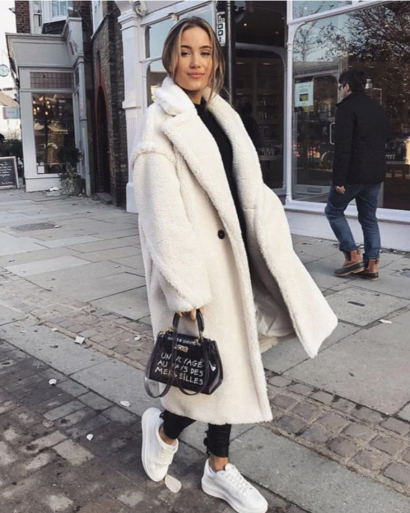 Stay warm and stylish with the Omira Teddy Jacket, the perfect blend of comfort and elegance. Crafted from premium teddy fabric, this longline coat offers exceptional warmth while maintaining a fashionable silhouette. Whether you're dressing up for an evening out or layering it over casual wear, this coat is a must-have for your winter wardrobe.