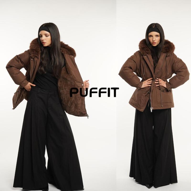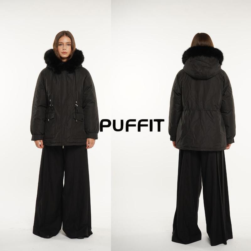 PUFFIT Faux Fur Mid-Length Hooded Drawstring Parka, Winter Warm Thickened Ladies Puffer Jackets, Fleece Lined Winter Coat for Women #FallFreshness   Design details: 1.For Better Warmth: -Large lapel design; -Rocker fleece fabric; -Ribbed cuffs; -Comfortable rabbit fur lining; -Fur stripe around the hat; -Adjustable Hat Cord; 2.Deep Pockets: -Large patch pockets with increased capacity, capable of holding two iPhone 15s (147.6x71.6mm)