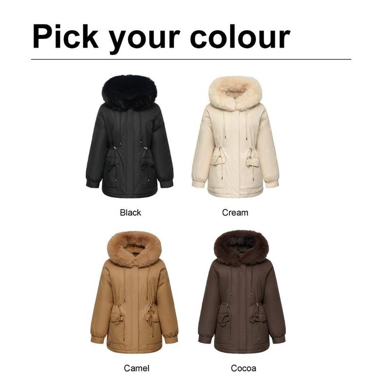 Faux Fur Mid-Length Hooded Drawstring Parka, Winter Warm Thickened Ladies Puffer Jackets, Fleece Lined Winter Coat for Women #FallFreshness