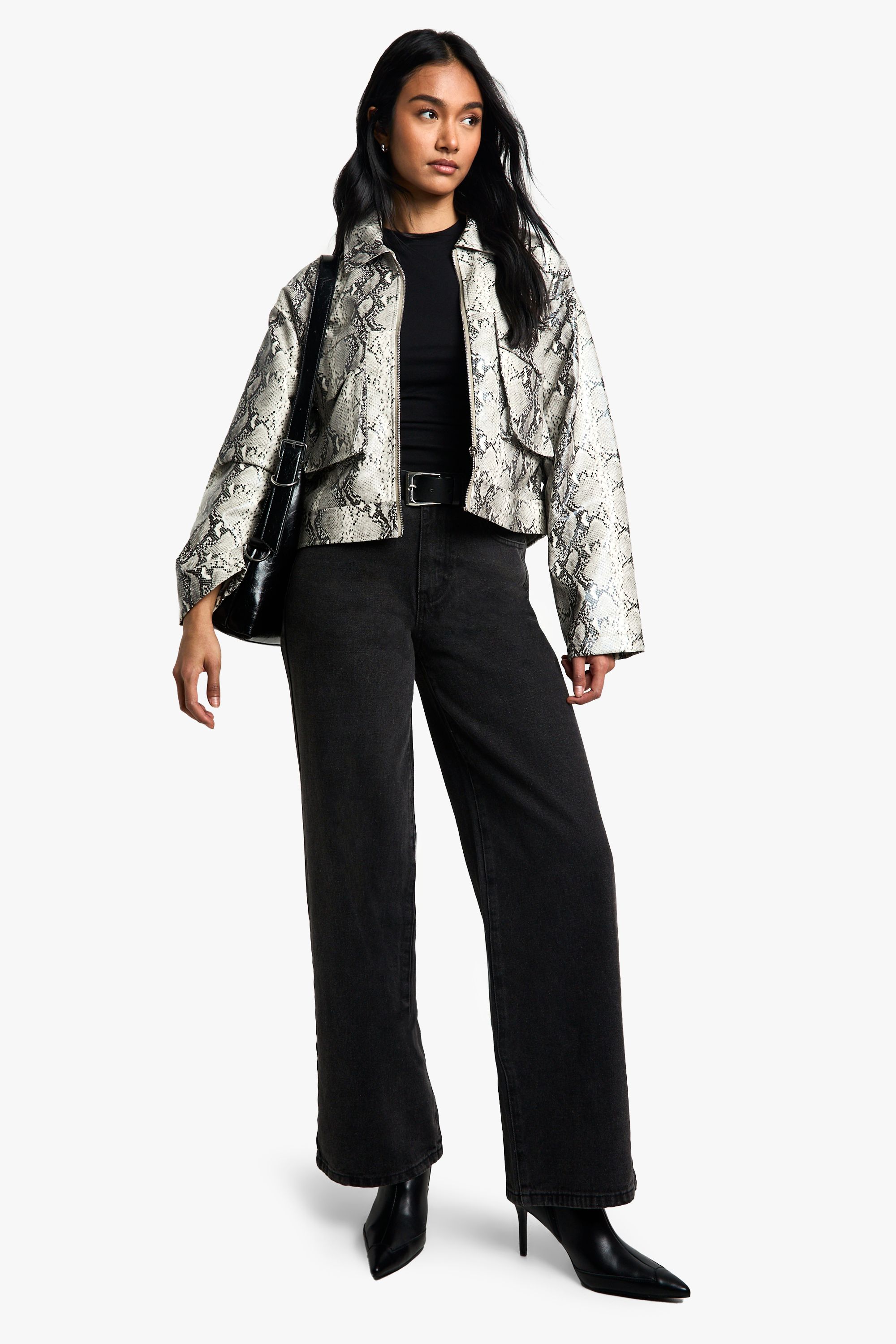 • Front zip closure for easy wear Make a bold statement with this striking snake print jacket from Boohoo. Perfect for the fashion-forward woman who loves to stand out, this faux leather piece combines edgy style with versatile wearability. The cropped length adds a contemporary twist to your outfit, while the notched lapel collar lends a touch of sophistication. Style it with high-waisted trousers and a simple black top for a chic ensemble that's ideal for casual outings or family gatherings. For a more relaxed look, pair it with your favourite jeans and trainers. The jacket's eye-catching print allows you to keep the rest of your outfit simple, letting this statement piece take centre stage. Whether you're heading to a pub with friends or enjoying a weekend shopping trip, this jacket is sure to turn heads and keep you on-trend.