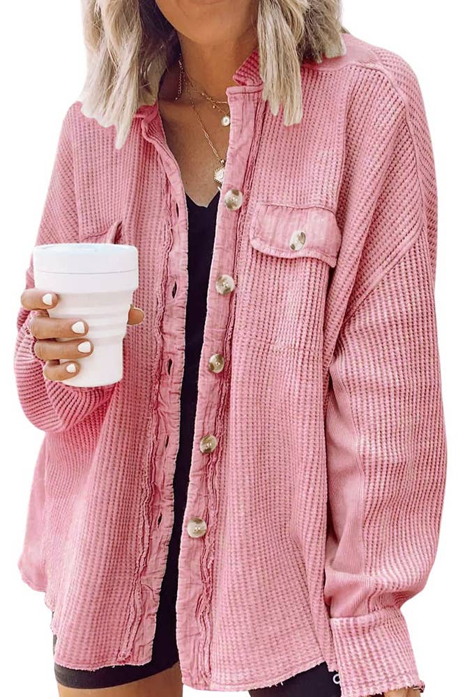 Super soft waffle weave lightweight jacket. Great for pairing with your comfortable jeans or with a tee shirt and leggins.