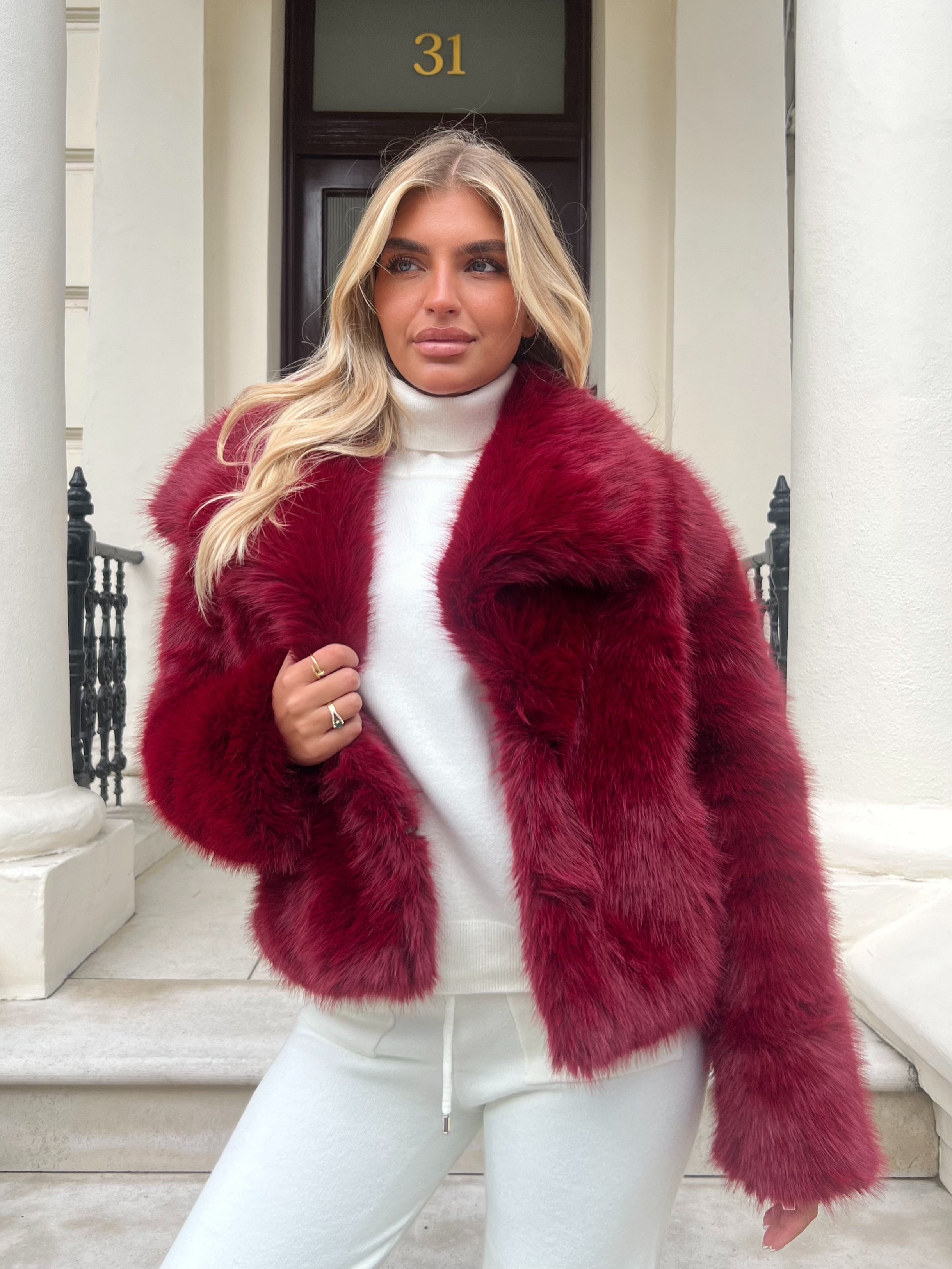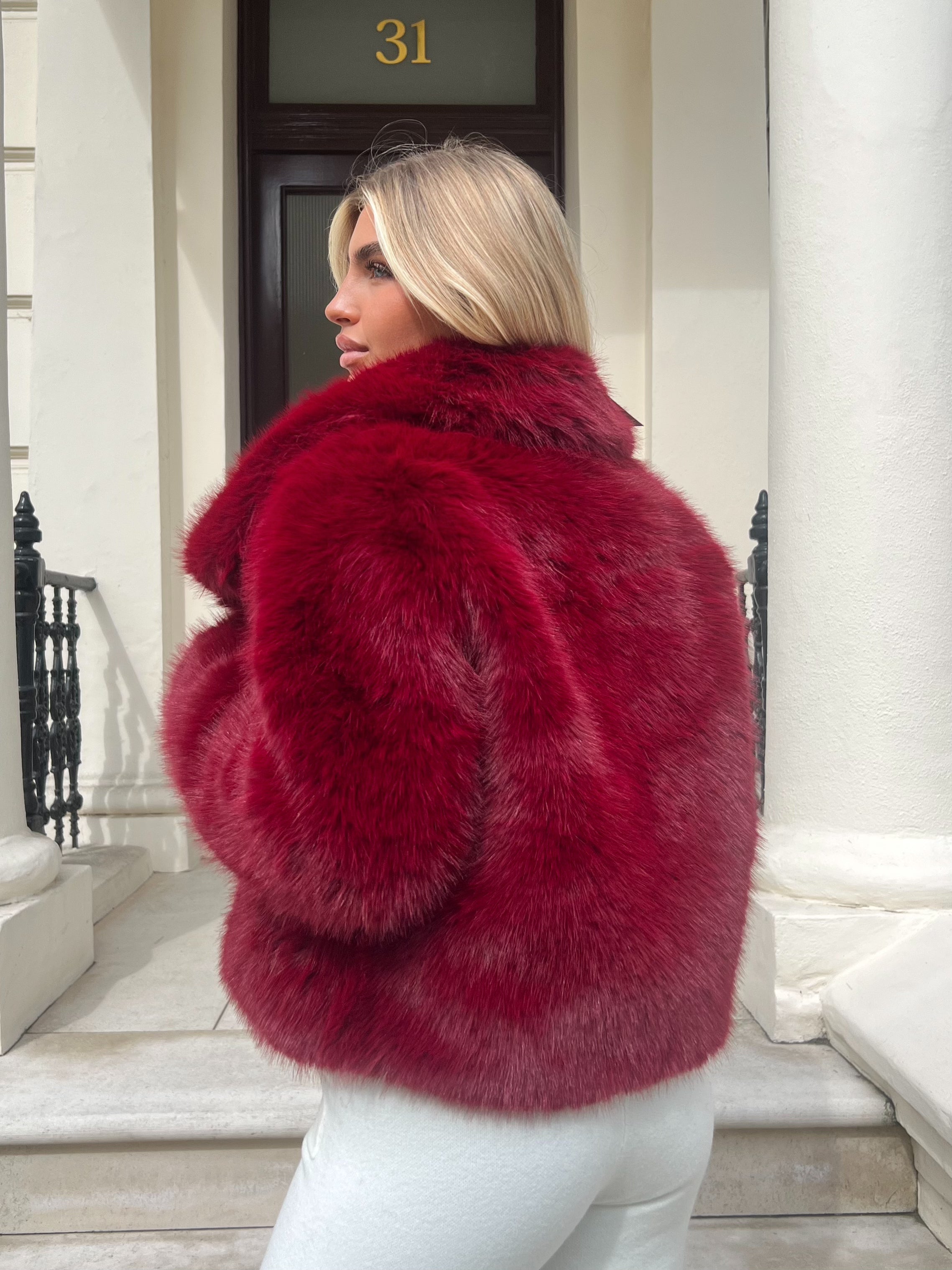 Expertly crafted with a large, luxurious collar and long sleeves for warmth and style. Made from premium faux fur, this elegant jacket is both fashionable and functional. Fastens securely with a hook and eye closure. Stay stylish and cozy this season with our Premium Faux Fur Collared Jacket.