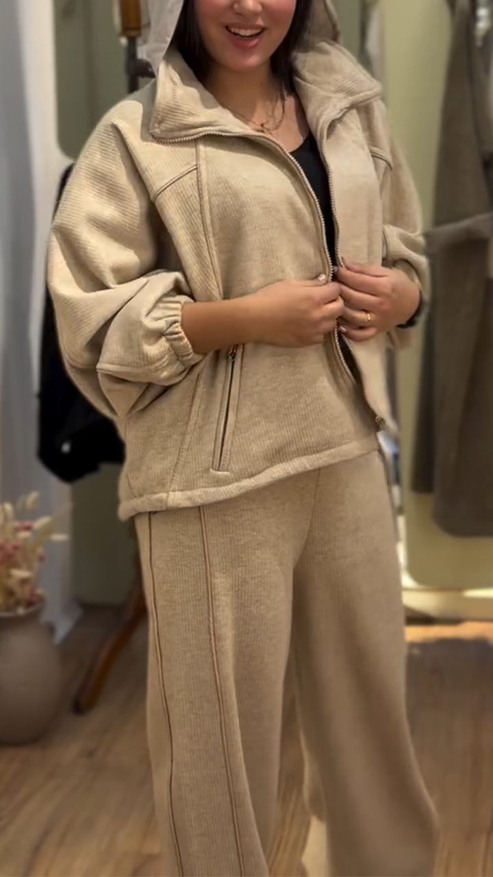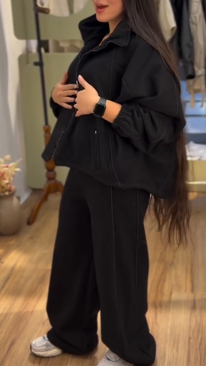 Women Laple Collar Jacket+ Pants Casual Set