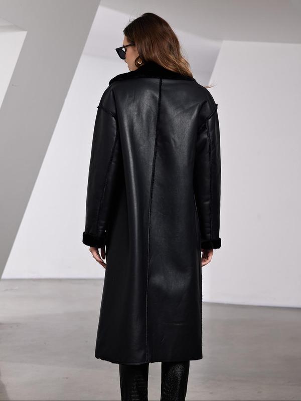 【Warmth Retention】: This long coat is crafted for maintaining warmth during fall and winter with its plush materials.【Unique Features】: The fuzzy collar and dropped shoulders distinguish this coat from others, enhancing its urban-inspired elements.【Loose Fit】: Designed with a loose-fitting silhouette, this coat allows for unrestricted movement while layered.【Plain Pattern】: The simple, solid pattern provides a classic look, making it an easy pairing with various outfits.【Extended Length】: The long length of this coat ensures additional coverage and warmth, perfect for cooler seasons.