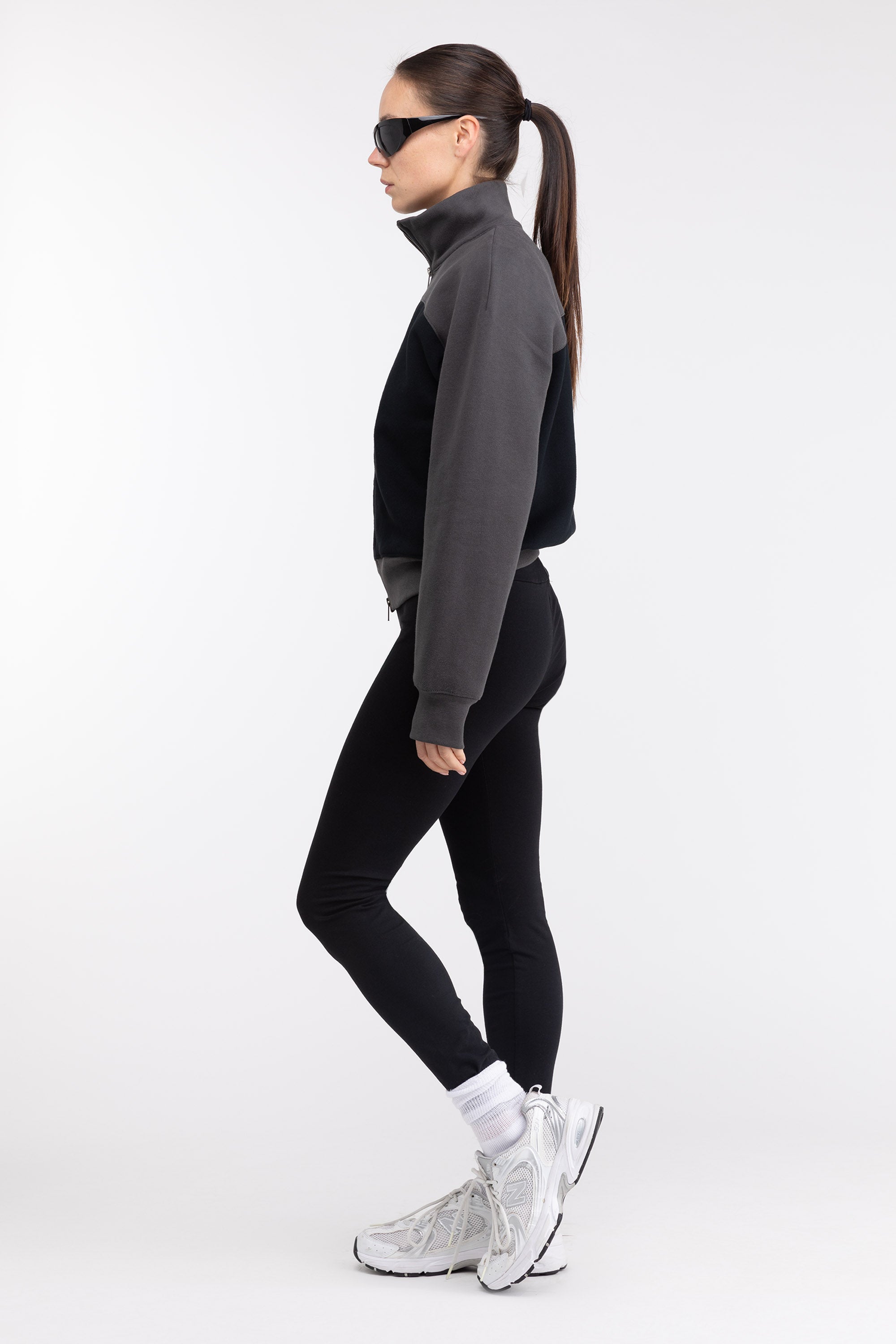 Relaxed fit. High neckline. Two-way zip front. Colour block design. Side pockets. 22.75" length based on size S.