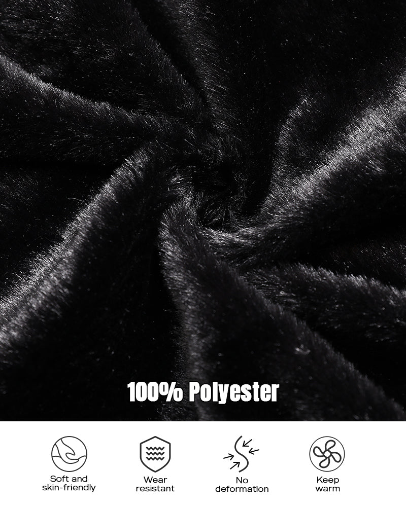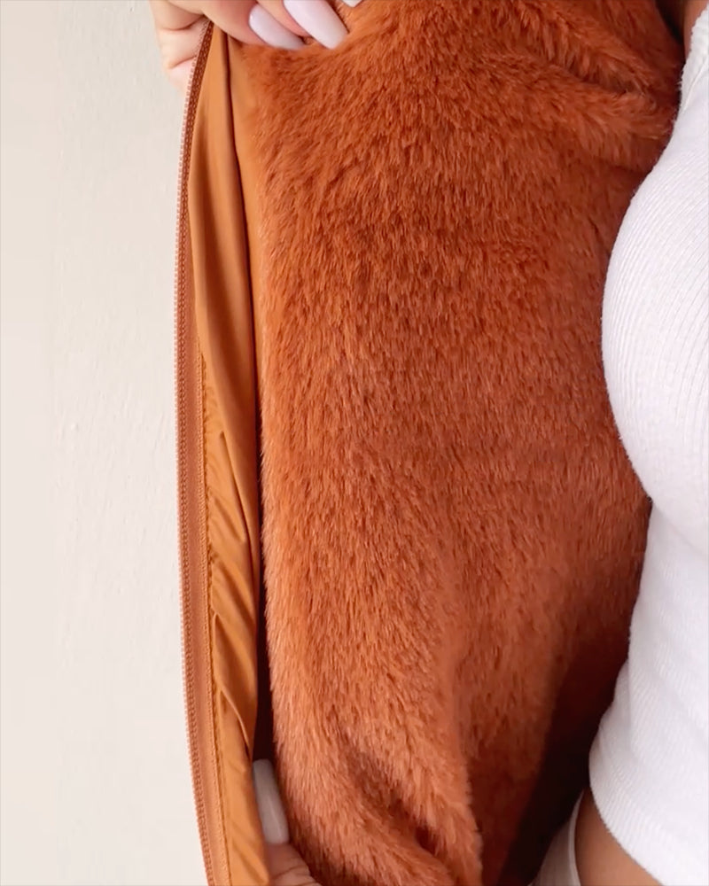 • Zipper Pocket Design Shirred Fuzzy Trim Fleece Lined Hooded Puffer Jacket