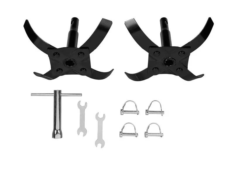 - Accessoires inclus : 2 clés à fourche, 1 clé à bougie, 2 roues à lames, 2 protections de lames