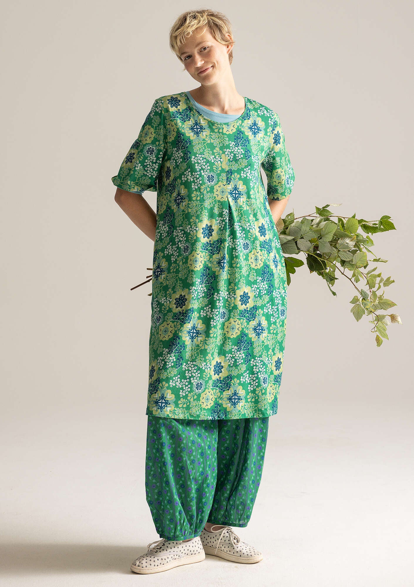 • Easy-to-wear dress with a digitally-printed design. Lovely scoop neckline and a stitched-down front box pleat. Elbow-length sleeves and inseam side pockets. Made from a cool, lightweight jersey fabric.