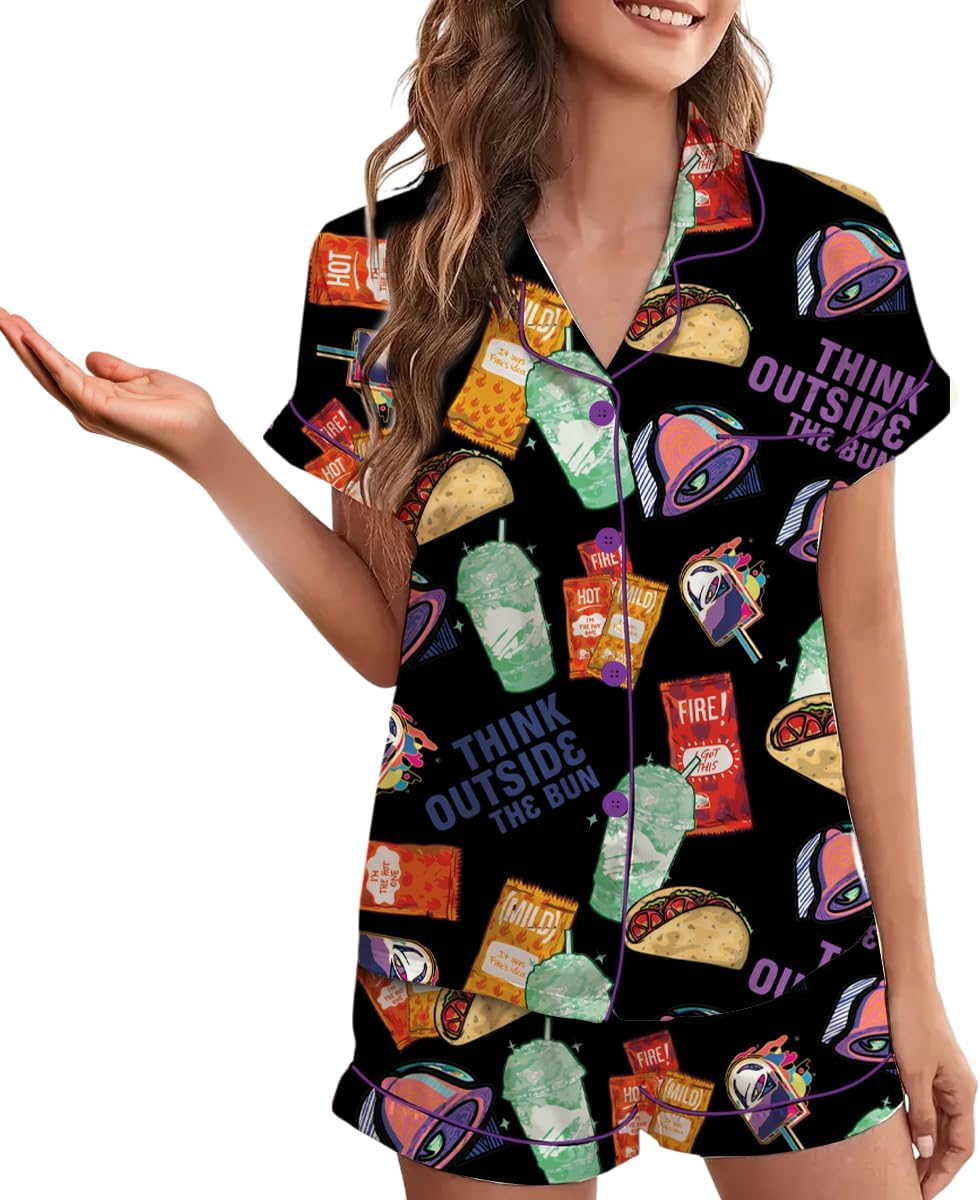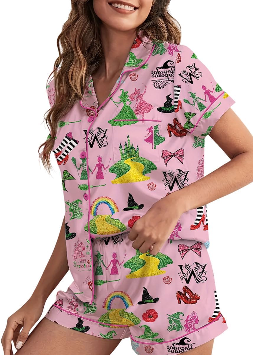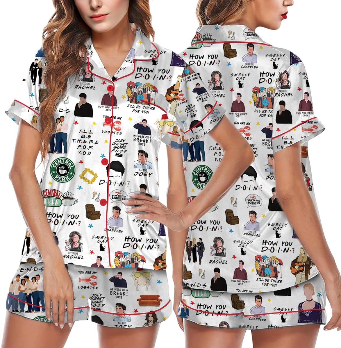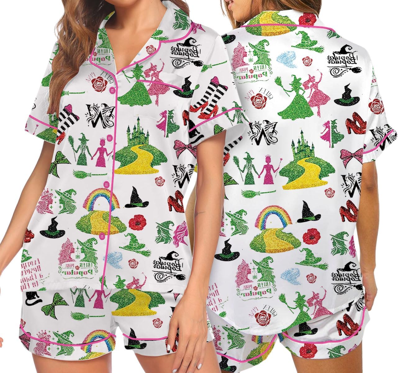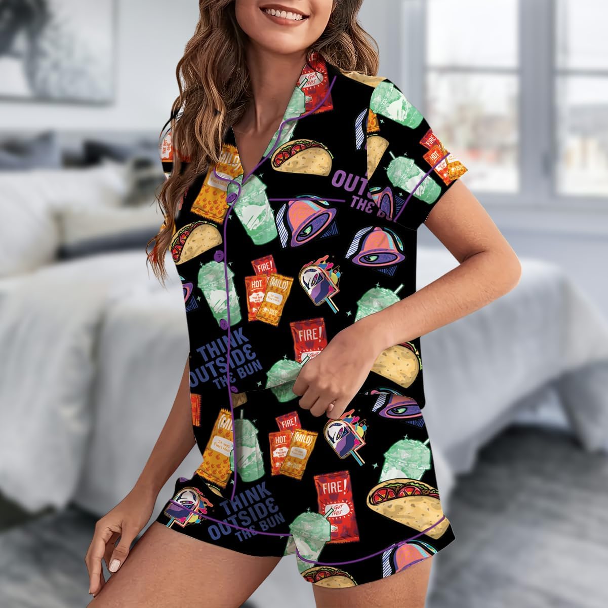 Design: Loungewear sets woman features a cute dog print on a classic silhouette, blending elegance with a touch of whimsy, The button-down top and elastic-waist shorts with side pockets offer lightweight comfort for effortless lounging
