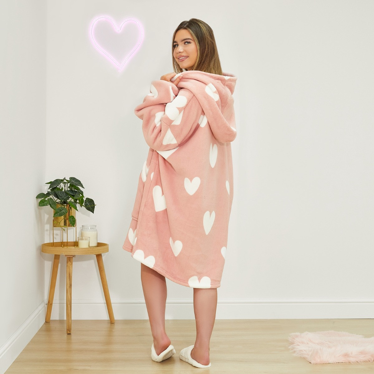 Ready for a comfy night in, this OHS Heart Print Hooded Blanket is your new comfort buddy! Featuring a sumptuously soft touch with a stylish heart print on the outer fabric and a soft sherpa lining. Expertly matched with elastic cuffs and a double opening front sherpa lined pocket, this will make a fantastic gift for friends and family. Crafted for optimum ease this is a durable, one-step care garment, used as a wearable sweatshirt. Simply wash at 30 degrees. One size fits all with this product and it is ideal for relaxing, working from home or taking with you to outdoor events.