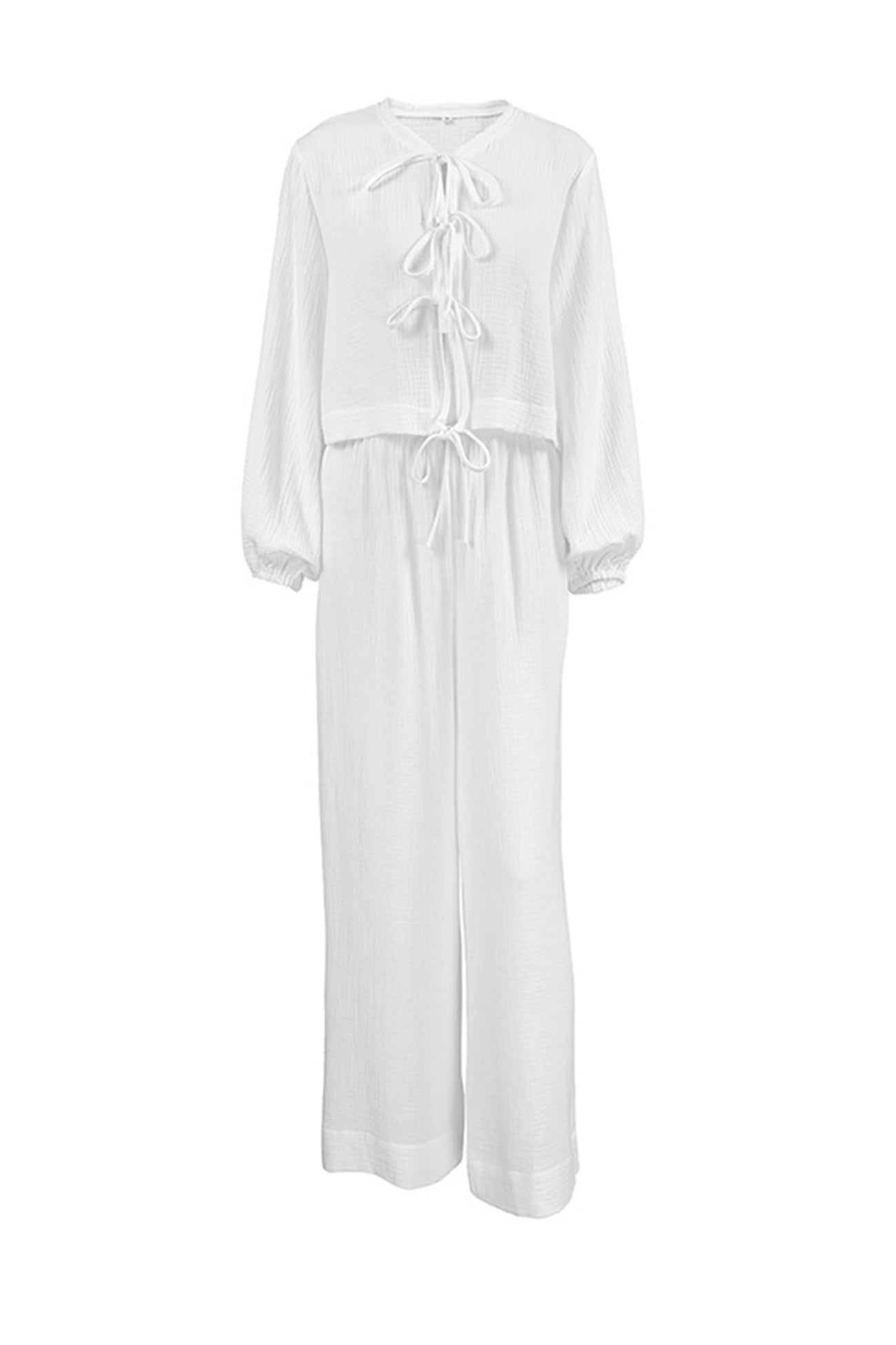 White Cotton Tie-up Shirt Long Pants Set