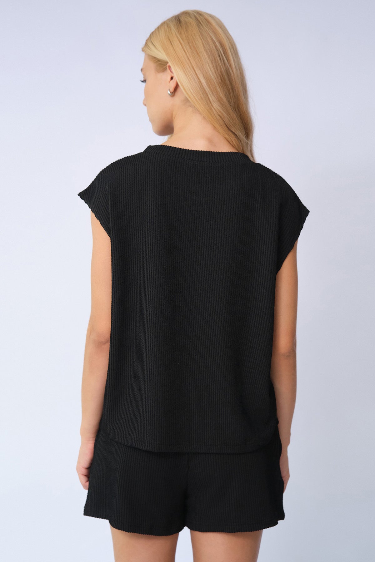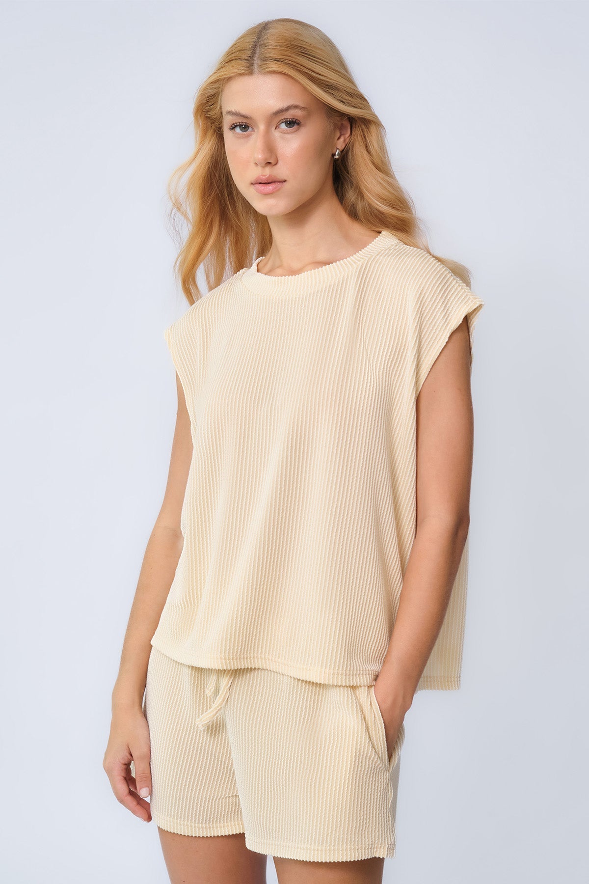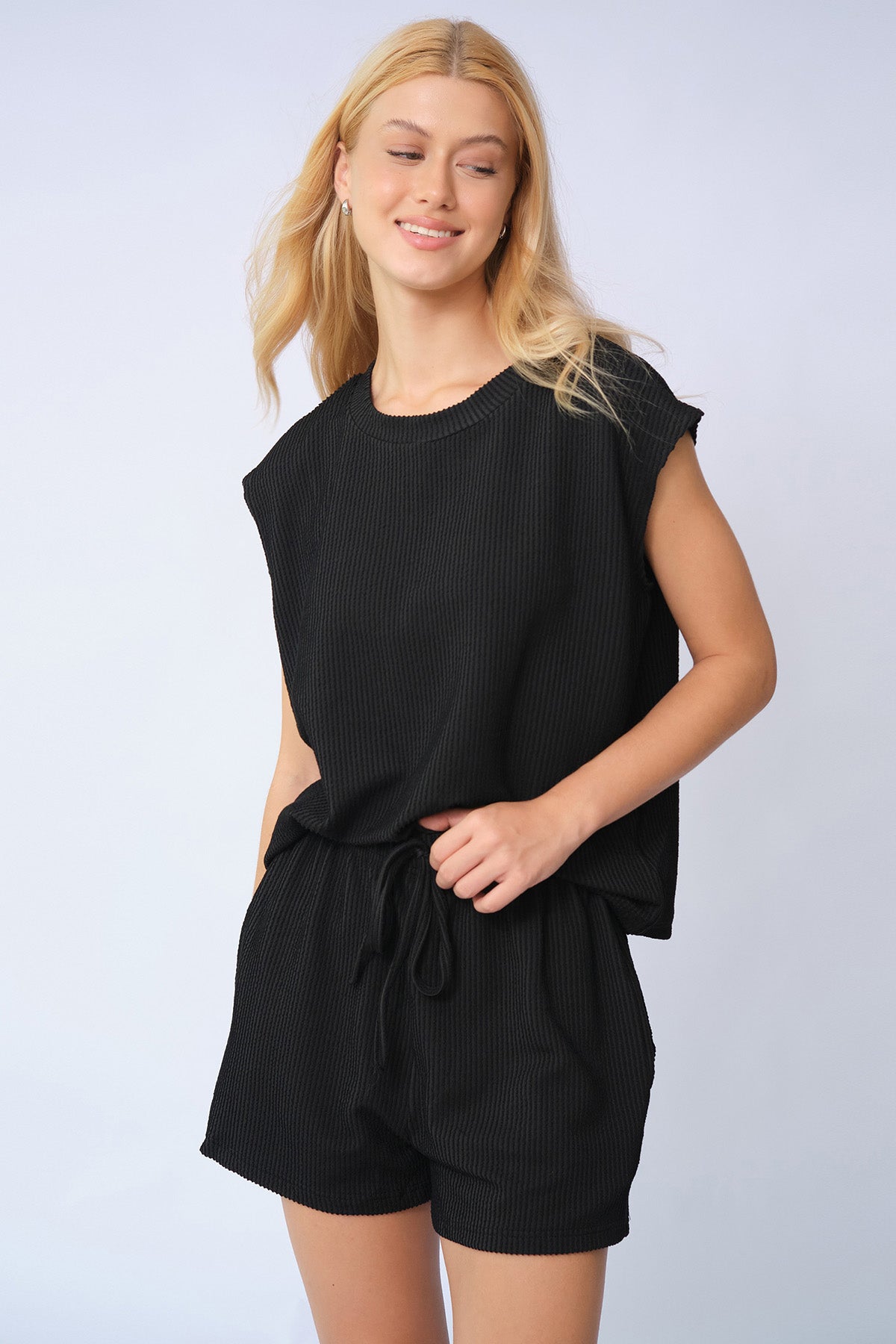 Elevate your everyday mood in this effortlessly chic two-piece set, where minimalist design meets all-day comfort for a look that lifts your spirits.