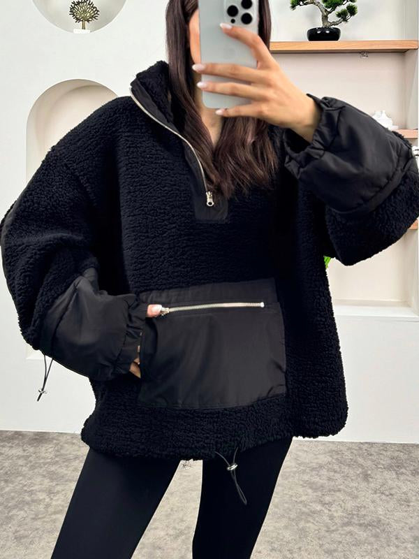 Women's winter stand-up collar lamb wool hoodie